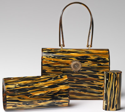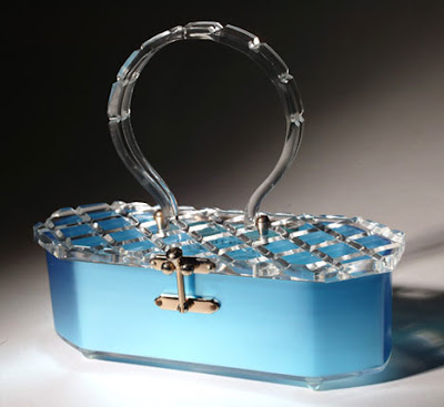 El lucite era un tipo de plástico muy resistente que no se amarilleaba, y su brillo se mantenía en el tiempo. Ello unido a unos diseños muy originales, llevaron a estos bolsos al éxito de forma inmediata