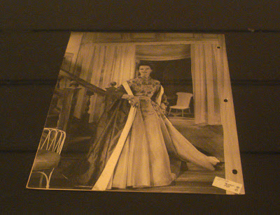 Este es, en mi opinión, uno de los vestidos más bonitos de la exposición. Es original y delicado, y resume las características principales de la moda de los años 30, pues el público esperaba ver reflejada en el cine la moda más actual. Katherine lo lució en una de las escenas más melodramáticas de la película "Stage Door", rodada en 1937, que protagonizó junto a Ginger Rogers.